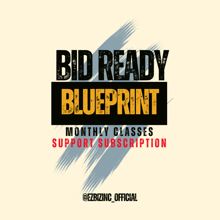 The Bid-Ready Blueprint™ Monthly Subscription was created for contractors who are ready to move forward but want a more flexible way to get started. With a small initial investment and manageable monthly payments, this option allows you to begin your Small Business Certification process, receive strategic guidance, and stay supported as you build your public works foundation — without feeling financially stretched. It’s the easiest way to say yes to getting positioned correctly and moving forward with clarity and confidence.